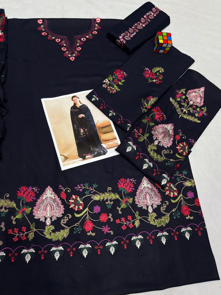 Step Into Seasonal Charm With This Unstitched Embroidered 3-Piece By MARIA B, Created To Offer A Perfect Balance Of Comfort And Contemporary Style. The Premium Heavy Embroidered Dhanak Shirt Features A Vibrant That Radiates Freshness And Elegance. A Coordinated Ready To Wear Heavy Embroidered Shawl Adds Graceful Flow, While The Dyed Dhanak Trouser Ensures Durability And Comfort. Ideal For Daywear, Casual Events, Or Festive Gatherings, This Ensemble Gives You The Freedom To Stitch A Look That Reflects Your Personal Fashion Sense.